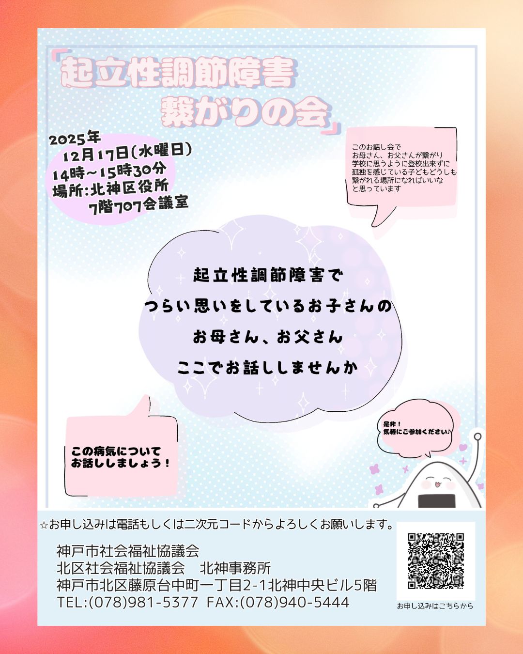 令和7年12月17日(水)「起立性調節障害 繋がりの会」開催します♪